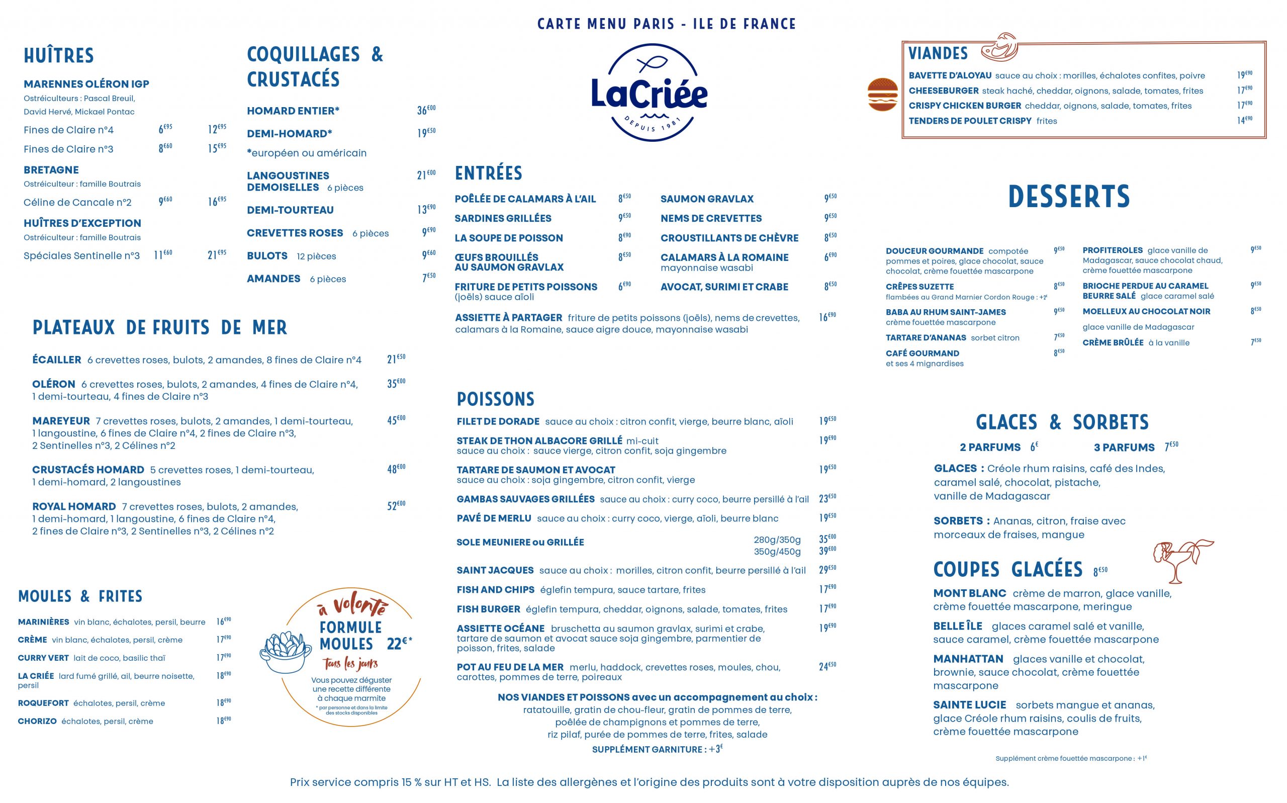 * Les cartes menu des restaurants de Province ne sont pas disponibles sur notre site.